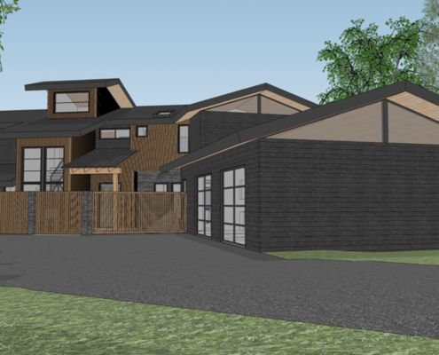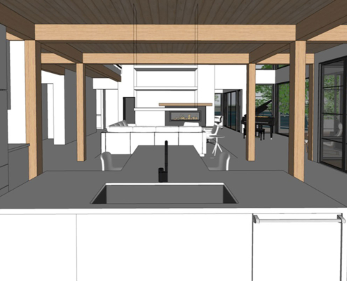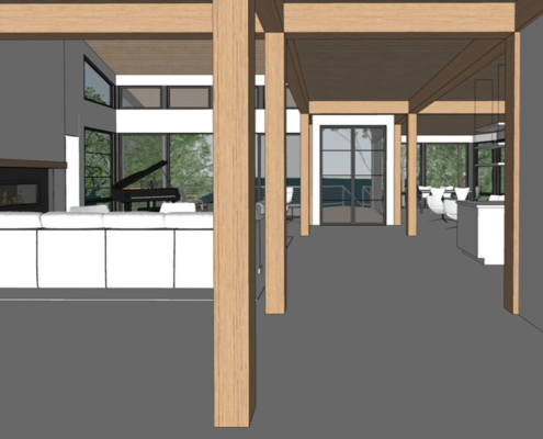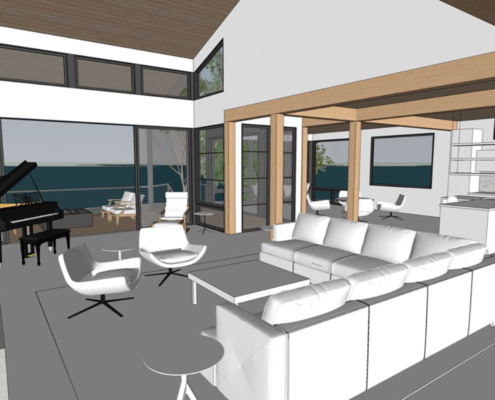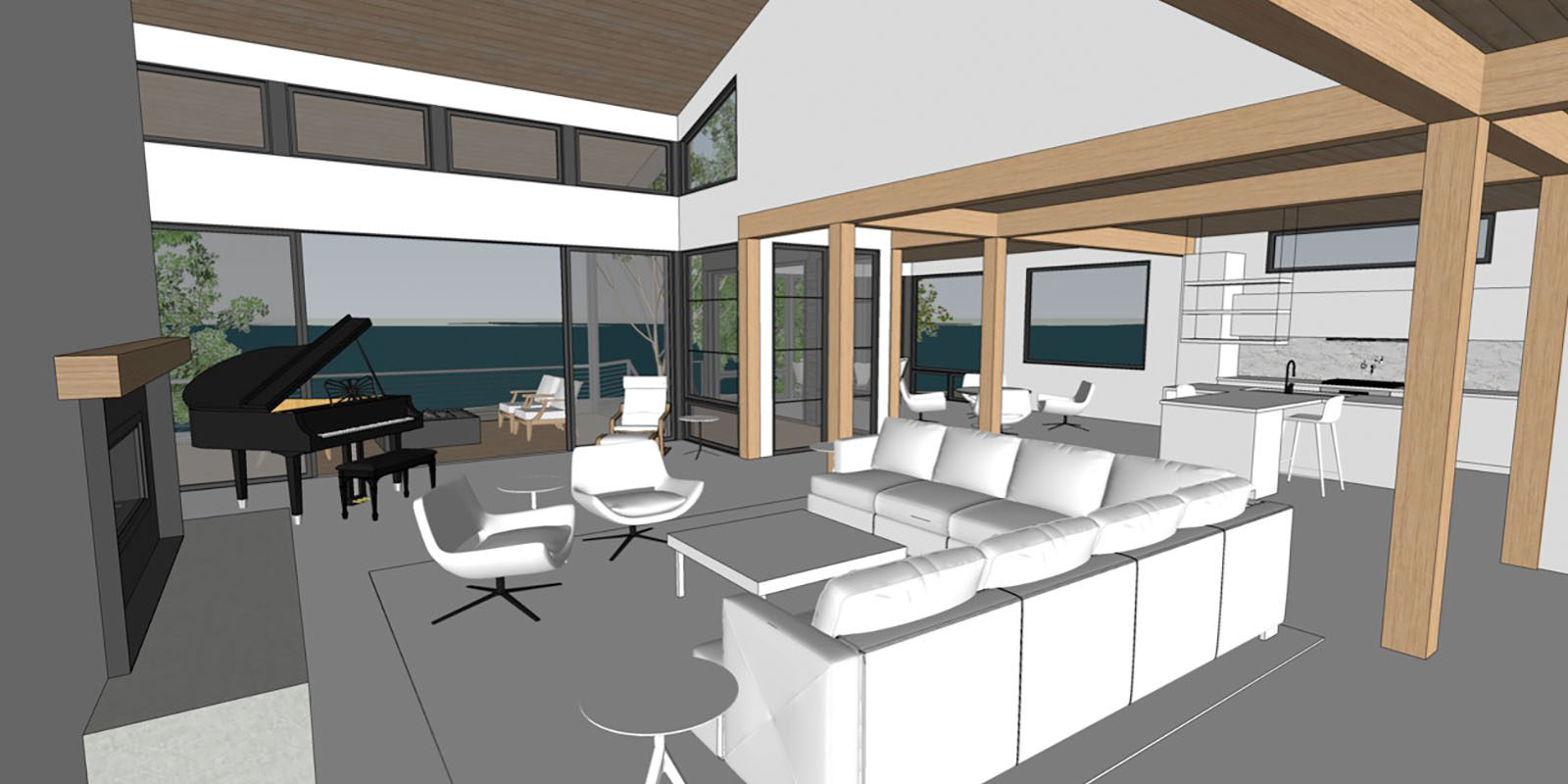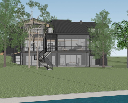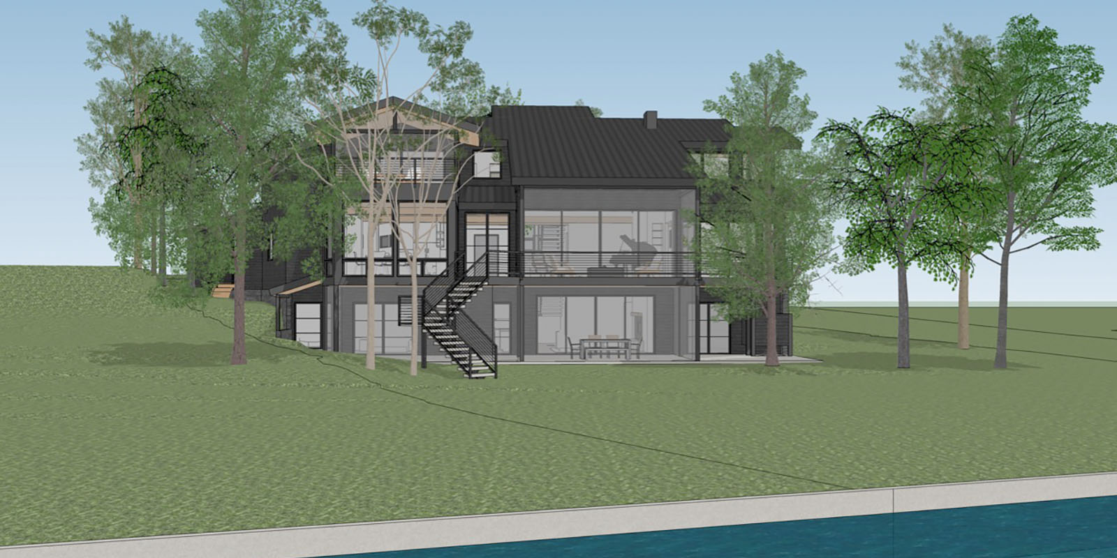 This 7,000 sf, three-level home on Lake of the Woods in Orange County, Virginia supports a life of music and family gathering. The architecture plays to the lakefront with screened extensions that take in views while mitigating exposure to sun, humidity, and insects. The exterior material palette is shou sugi ban wood siding, a dark local stone, and standing seam metal roofs. The intention of living with a background of the Owner’s piano music filling the home and the lakefront property gives the home an air of openness and flow.